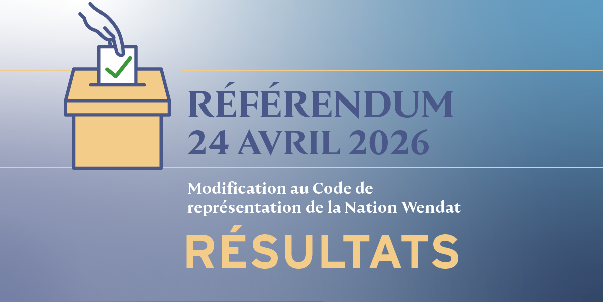 Le 24 avril 2026, les Wendat se sont prononcés à 72 % en faveur de la modification du Code de représentation. Les résultats démontrent l’engagement des Wendat envers la question et marque une nouvelle étape dans la gouvernance de la Nation.